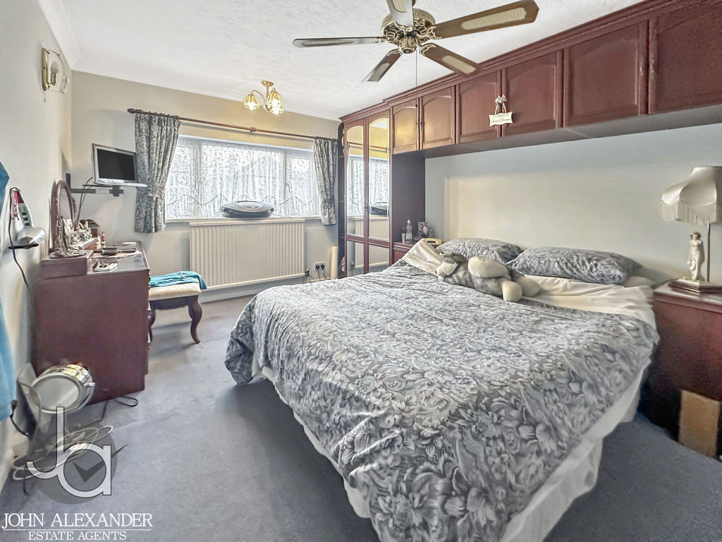 Upstairs, the landing offers cupboard space and room for a tumble dryer, with access to a boarded loft with ladder, water tank, and alarm. The master bedroom (4.56m x 3.07m) includes an en suite shower, fitted wardrobes, ceiling fan, and a walk in airing cupboard housing the new 2026 combi boiler.