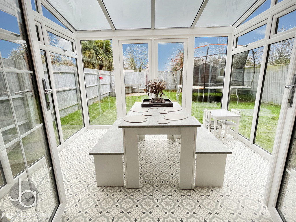 CONSERVATORY Double glazed windows surround, French doors to rear garden.