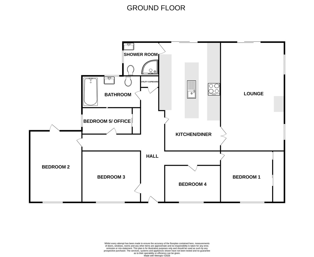 This beautifully renovated four/five-bedroom detached bungalow offers substantial and versatile single-level living, ideal for modern family life, home working, or those seeking long-term comfort without compromise.