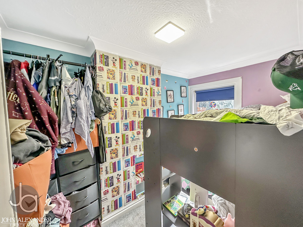 Bedroom Two measures around 10'5" x 6'8" and has a double-glazed window to the rear, a radiator, and laminate flooring. This room would suit use as a single bedroom or home office.