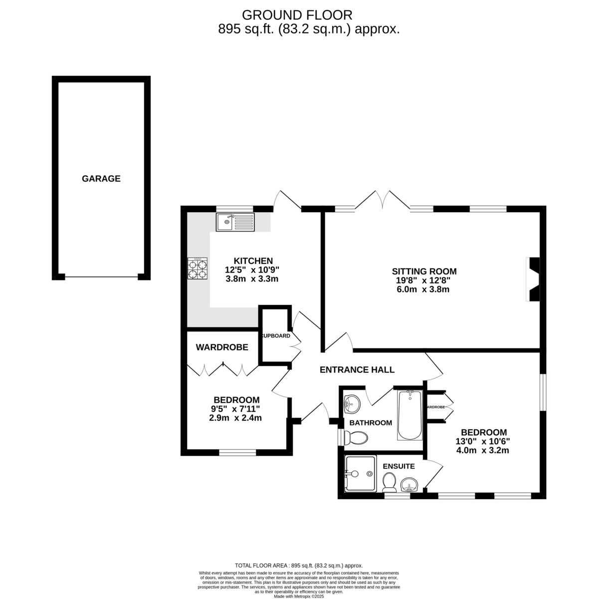 DETCHAED GARAGE Up and over door with personal door to garden, power and light connected.