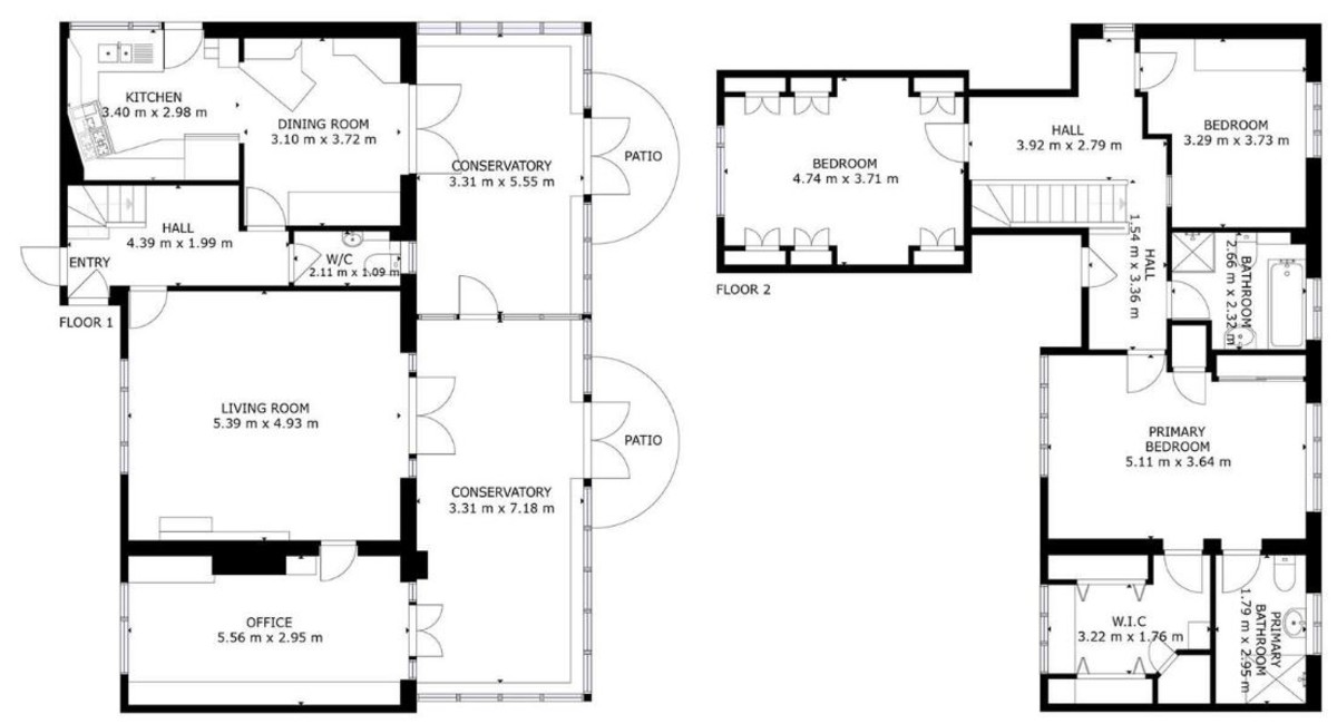 Conservatory One (7.19m x 3.3m) is a stunning addition to the home, flooded with natural light and offering French doors leading to the garden. A connecting door leads into Conservatory Two (5.56m x 3.3m), which also features French doors to the rear garden, creating a seamless indoor-outdoor flow and offering multiple access points to the beautifully maintained outdoor space.