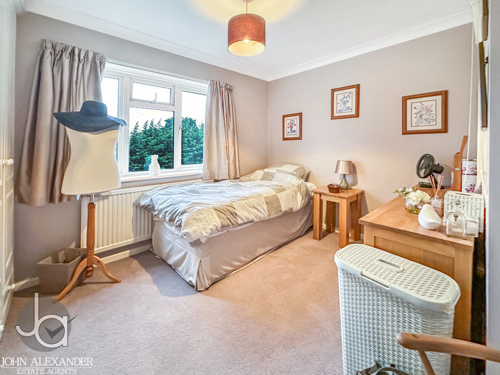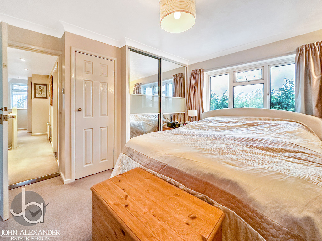 Bedroom Two (4.75m x 3.71m) is another large double room with built-in eaves cupboards, offering character and storage. Bedroom Three (3.73m x 3.3m) also benefits from built-in wardrobes, making it ideal for family or guests.