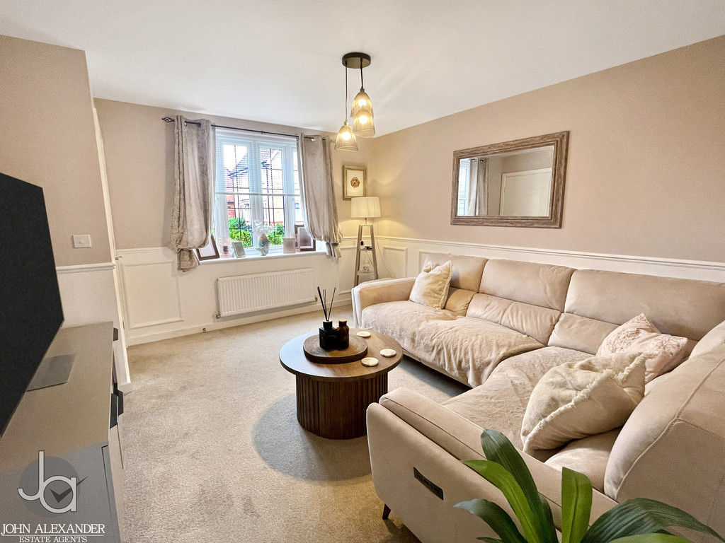 LOUNGE 13' 7" x 12' 3" (4.14m x 3.73m) Double glazed window to front, radiator, understairs cupboard.
