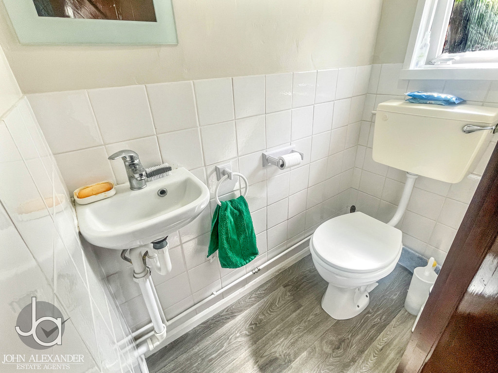 Upstairs offers three well-proportioned bedrooms, a family bathroom, a built-in wardrobe in the principal bedroom, and an additional storage cupboard on the landing.