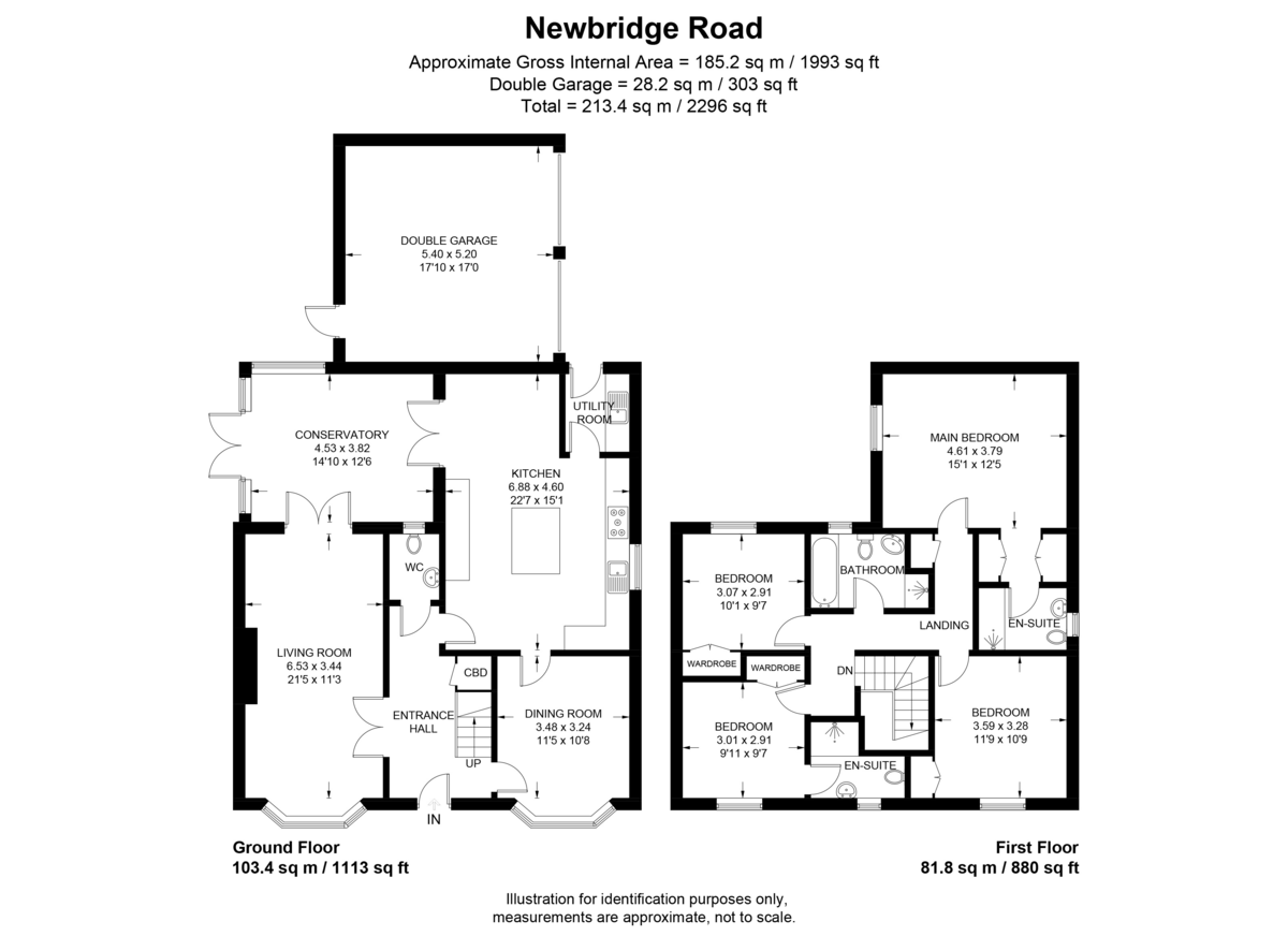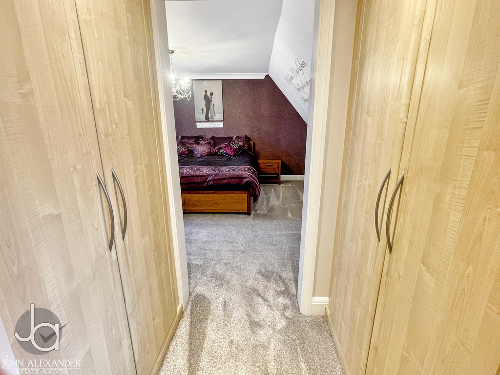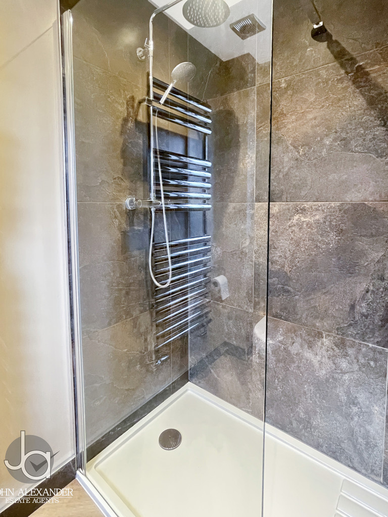 Upstairs, the generous main bedroom, 16'0" x 12'5" (4.88m x 3.78m), benefits from a walk‑through wardrobe area leading to a stylish en‑suite with walk‑in shower. Bedroom two, 10'2" x 9'6" (3.10m x 2.90m), also enjoys its own en‑suite with a double shower and fitted wardrobes. Bedrooms three and four, measuring 11'8" x 10'7" (3.56m x 3.23m) and 10'3" x 9'6" (3.12m x 2.90m) respectively, each include fitted wardrobes. Completing the first floor is a beautifully appointed family bathroom featuring a claw‑foot bath, separate shower, and fitted storage.