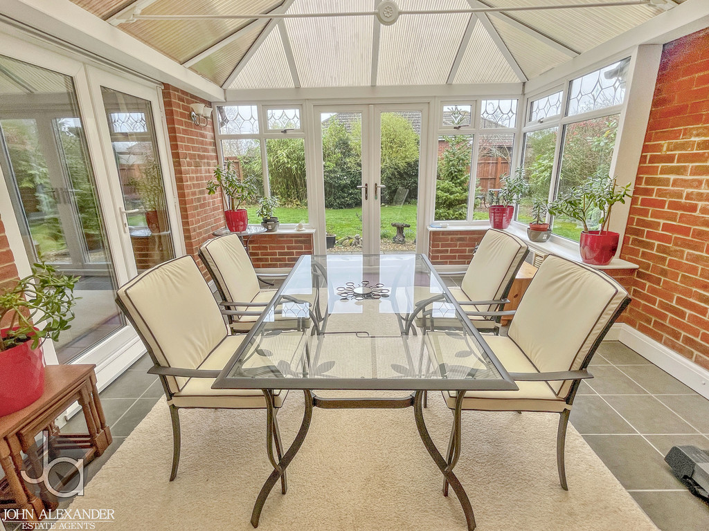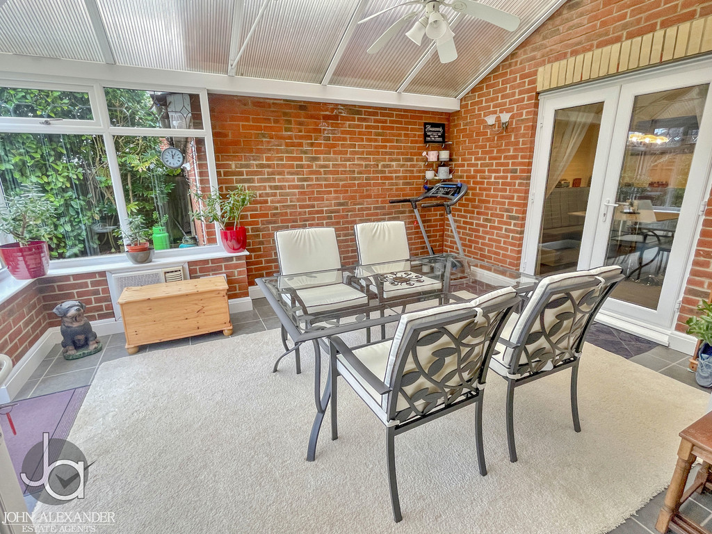The impressive lounge, measuring 23'7" x 11'3" (7.19m x 3.43m), provides a superb setting for family living and leads directly into the bright conservatory, 15'8" x 12'9" (4.78m x 3.89m). This attractive space enjoys French doors opening out to the garden, creating an ideal spot for year‑round relaxation and seamless indoor-outdoor living. A separate dining room, 15'0" x 10'7" (4.57m x 3.23m), offers a refined setting for formal meals and entertaining.