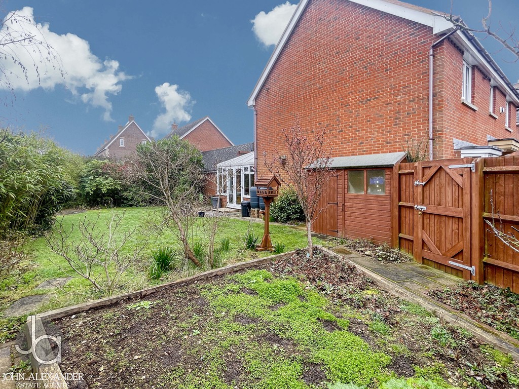 STEP OUTSIDE The rear garden offers a peaceful, private setting, laid to lawn with two patio areas ideal for outdoor dining, a vegetable patch. In the garden, there are - gooseberries, blackcurrants, raspberries, rhubarb, strawberries and the trees are eating apples, plums and cherry. , a variety of shrubs and flowers, and a useful shed. The front garden is attractively landscaped with slate, trees, and hedging, while a side passage provides excellent additional storage. A generous double garage offers two electric up‑and‑over doors and a pull‑down ladder to a fully boarded loft, with driveway parking for two vehicles completing the outside space.