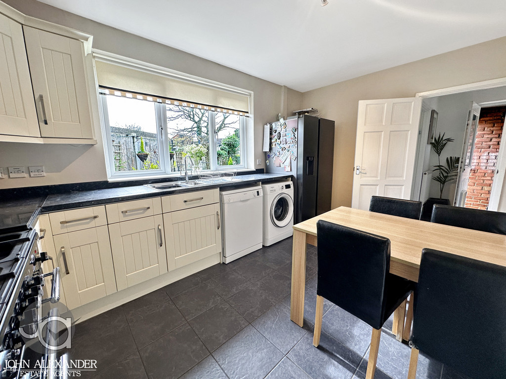 Continuing through the hallway, a doorway leads to the generous kitchen/breakfast room, positioned at the rear of the property and measuring 4.30m x 3.35m (14'1" x 11'0"). This sizeable room provides space for a dining table, with the layout allowing for a functional cooking and dining environment. A built in cupboard provides useful additional storage.
