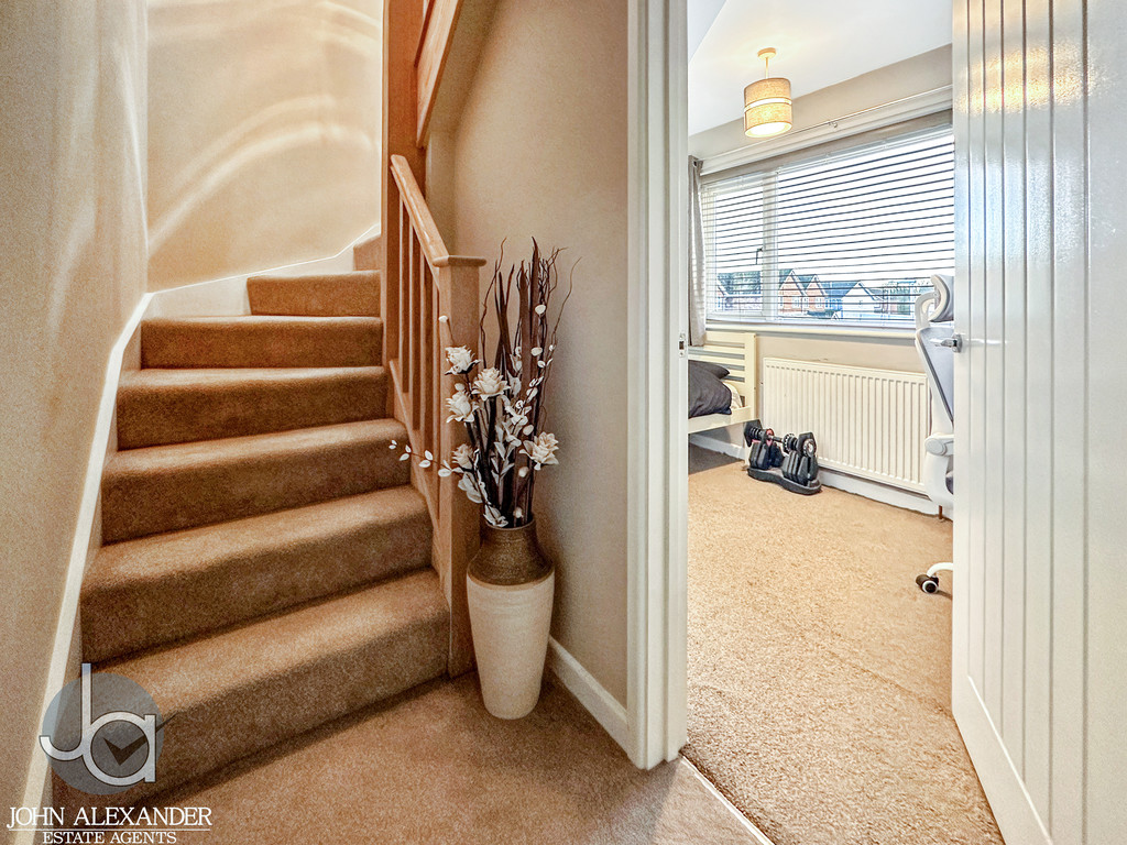 On the first floor, the landing provides access to four generously sized bedrooms. The largest (approx. 4.2m x 3.2m) faces the front of the property, while the remaining rooms, ranging from approx. 3.6m x 2.8m to 2.9m x 2.4m, offer comfortable space for children, guests, or home studies. A family bathroom (approx. 2.5m x 2.0m) completes the floor, fitted with a bath, basin, WC, and a newly installed shower cubicle (fitted Spring 2025).