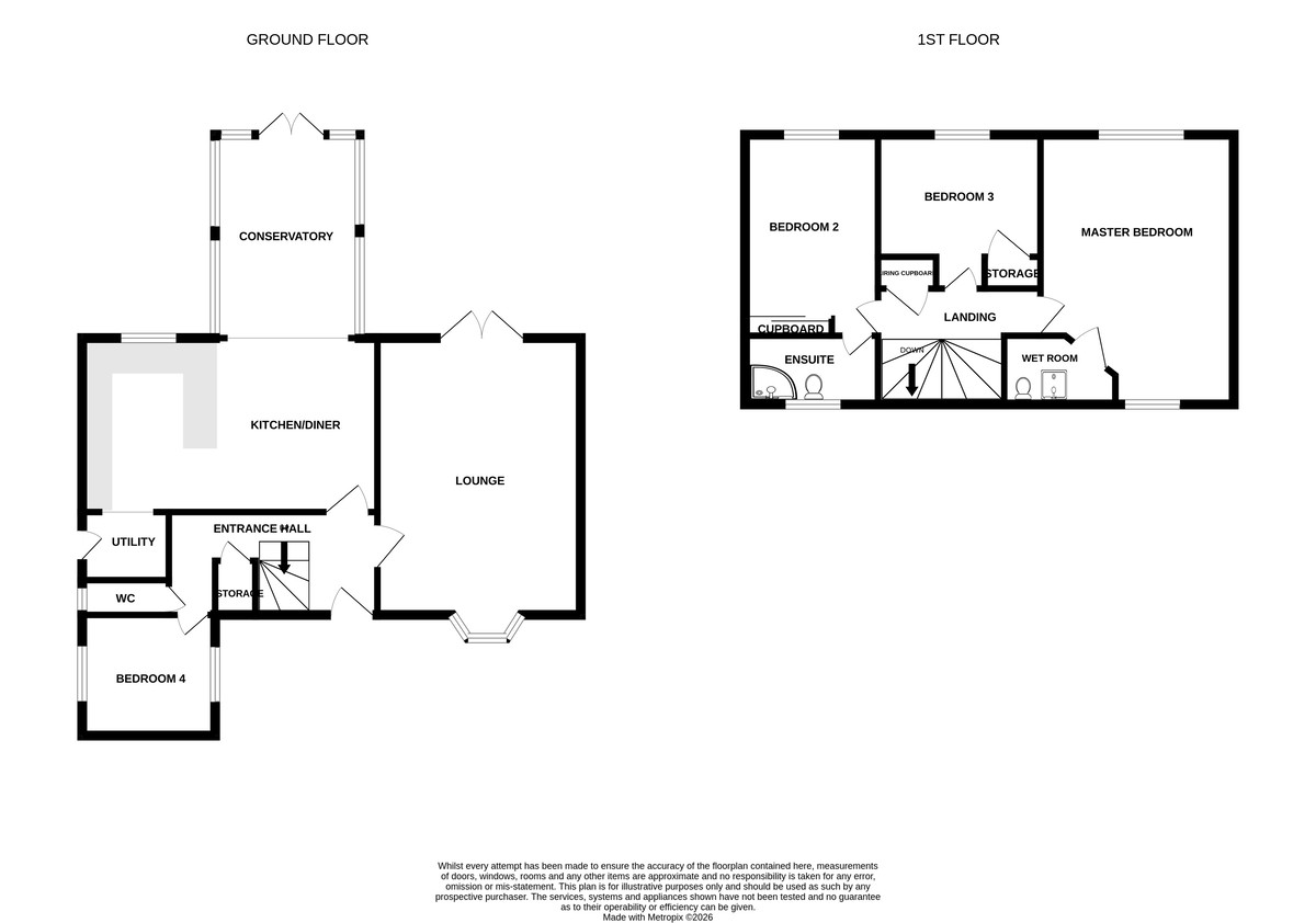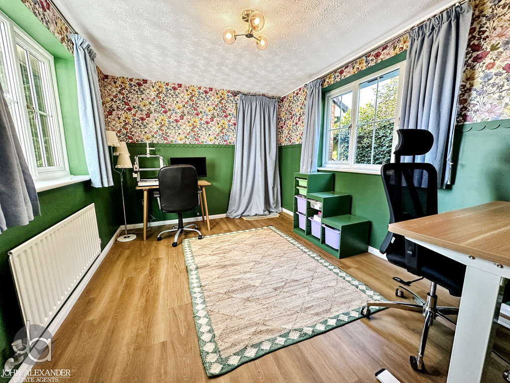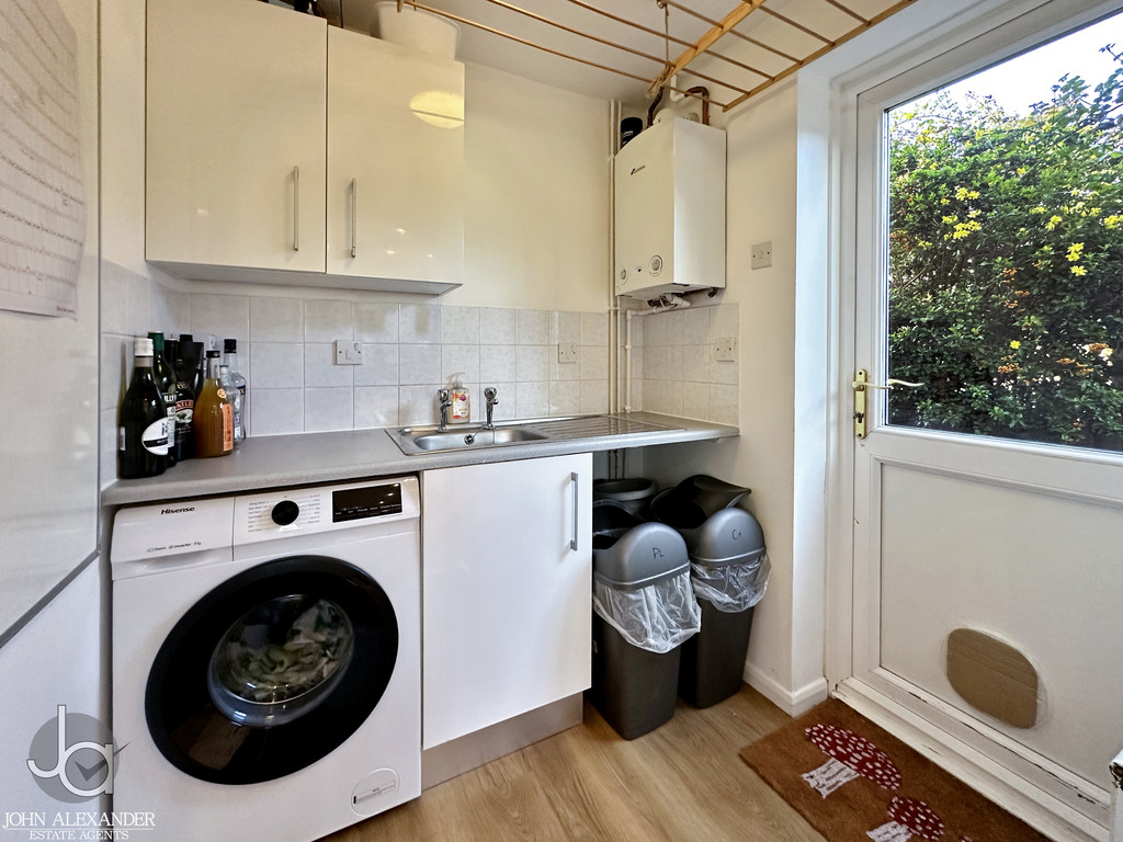 Leading from the kitchen is a practical utility room with matching cabinetry, sink basin, space for a washing machine, and housing the boiler. A ground‑floor WC adds further convenience. Completing the ground floor is a versatile fourth bedroom measuring approximately 9 ft x 7 ft 1 in, ideal for guests, multi generational living, or use as a home office.