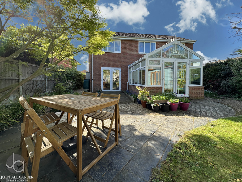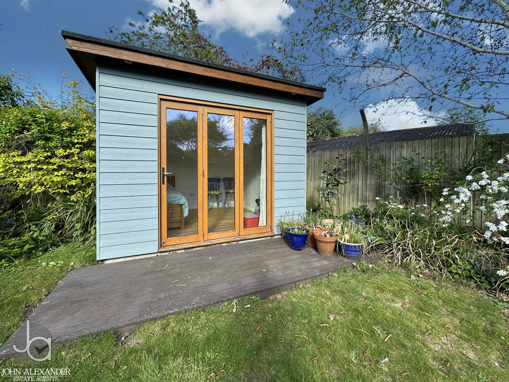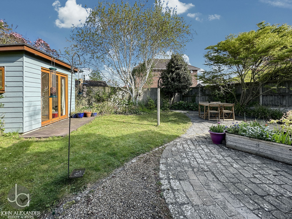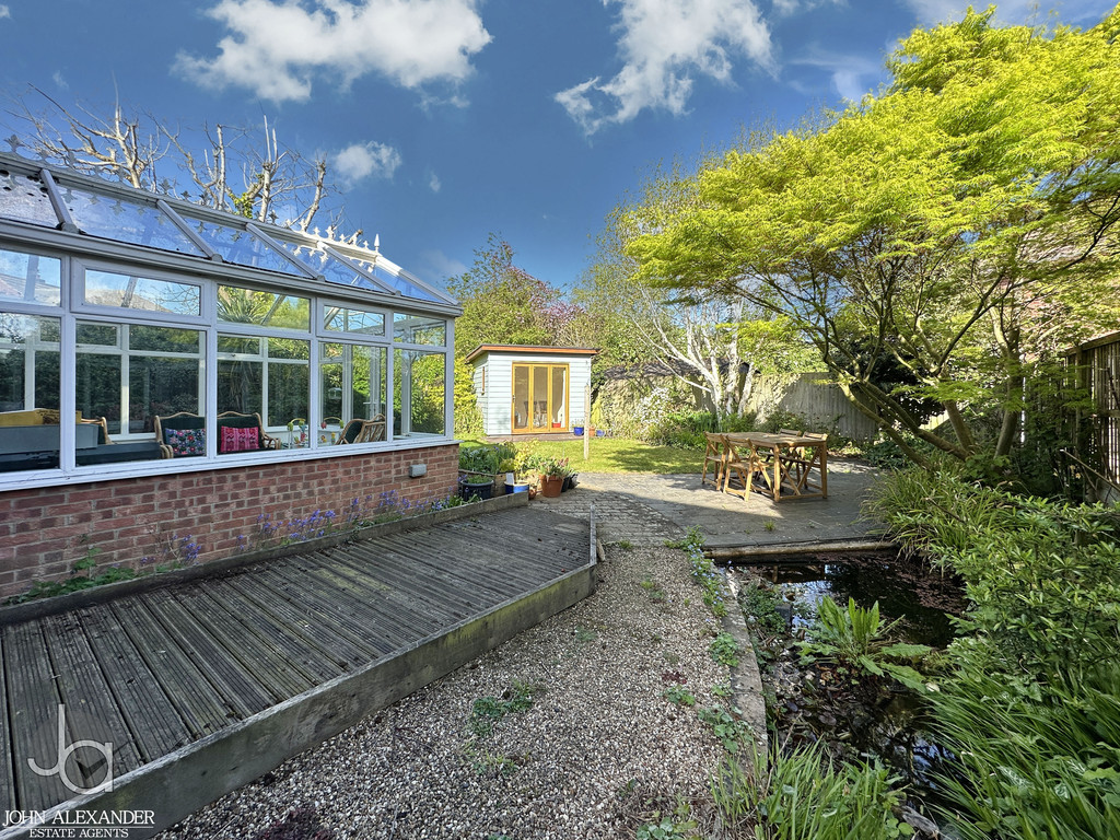 STEP OUTSIDE Outside, the rear garden is mature, private, and thoughtfully landscaped, featuring an enclosed lawn, patio area perfect for outdoor dining, fencing to all boundaries, and a pond adding character. A decked area sits to the side of the conservatory, ideal for entertaining or relaxing. The summer house, currently used as a guest bedroom, offers excellent versatility. To the front, the property benefits from two garages, off road parking for several vehicles, and established shrubbery enhancing kerb appeal.