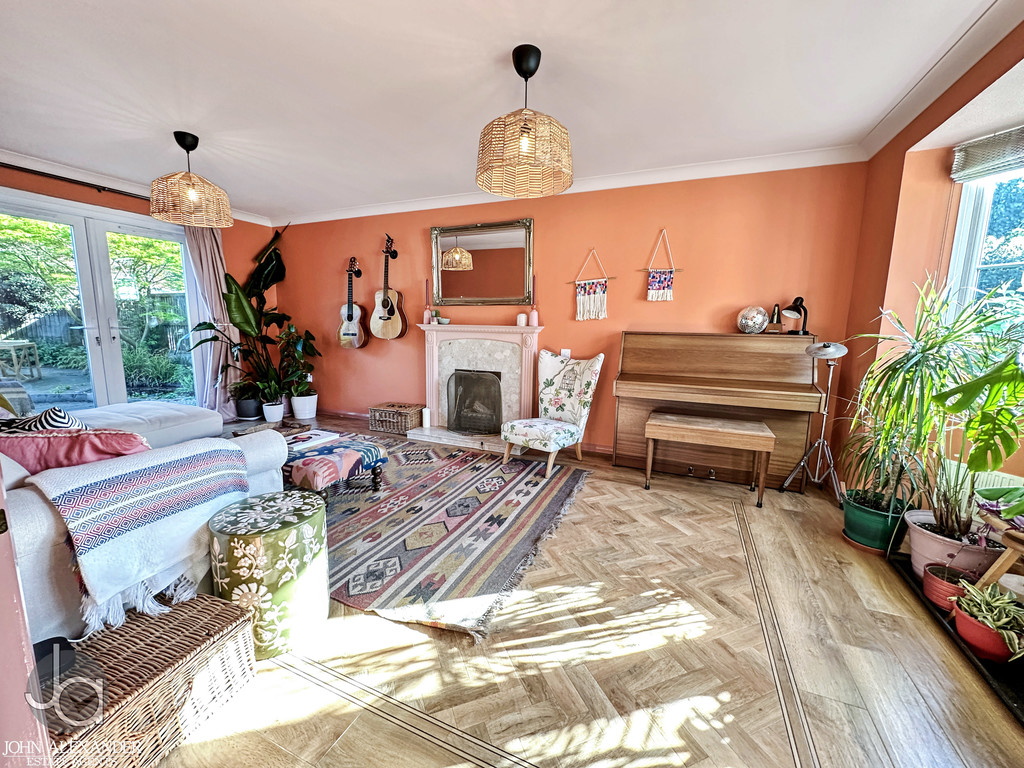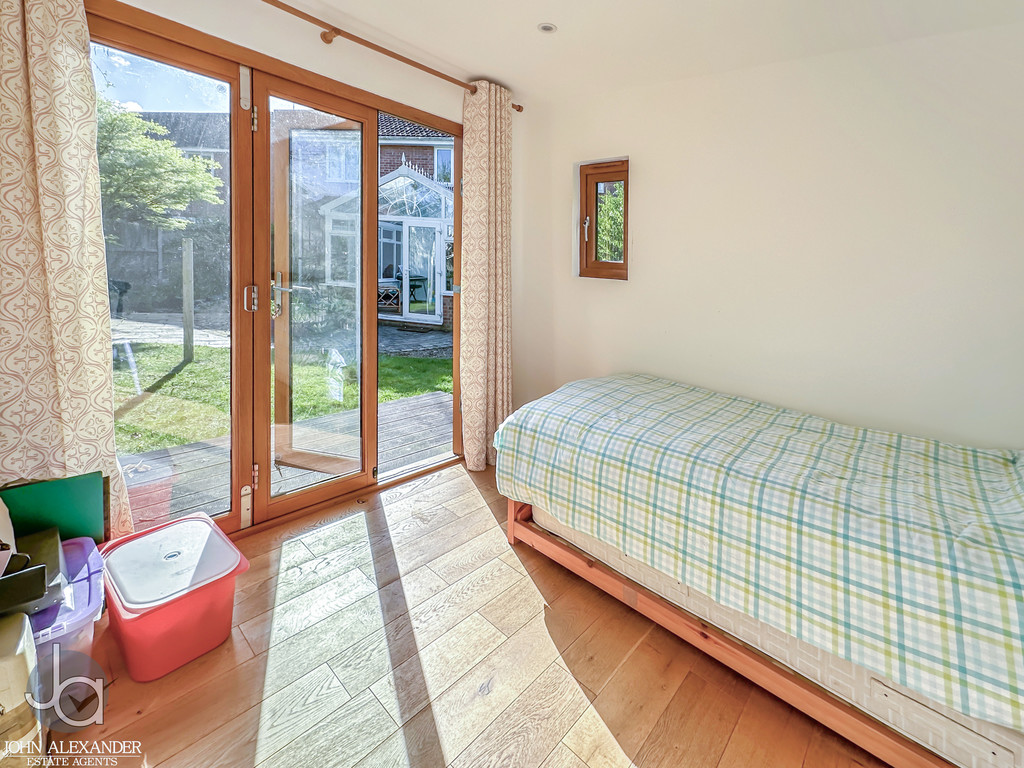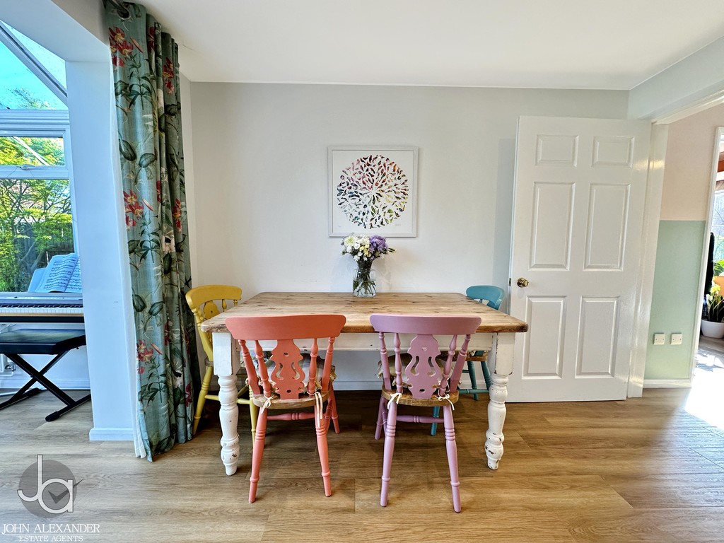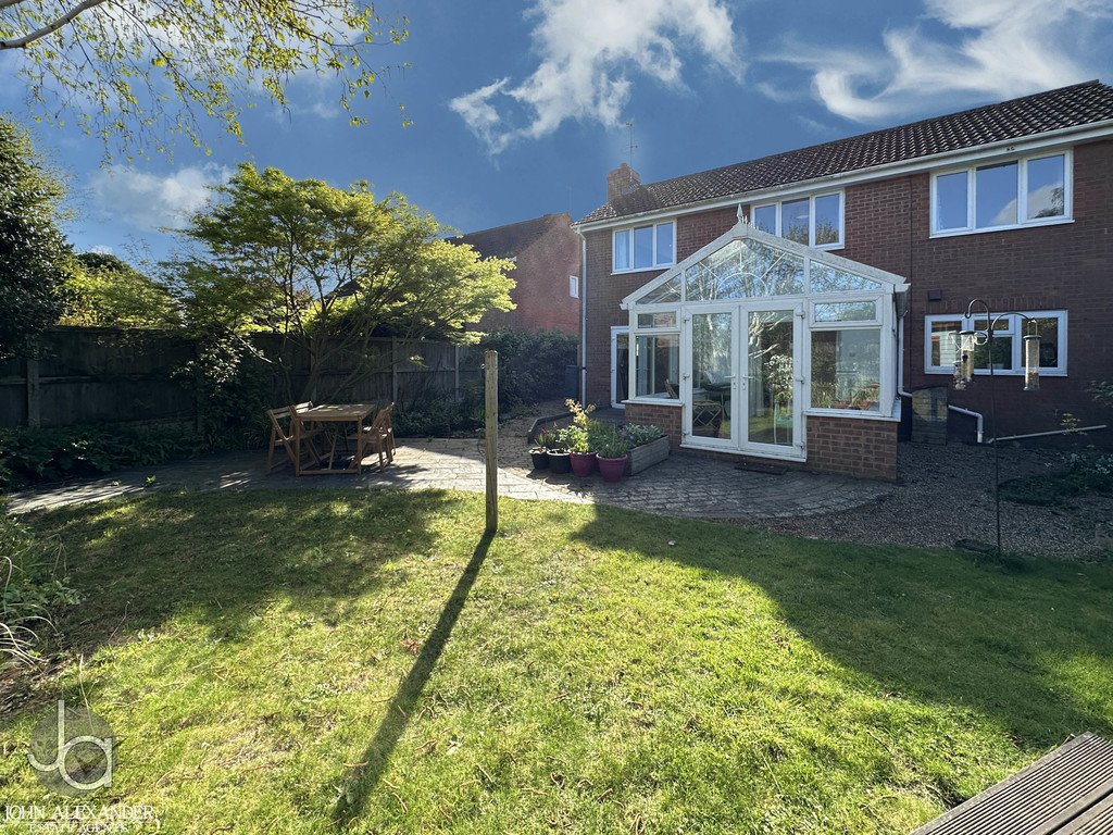 STEP OUTSIDE Outside, the rear garden is mature, private, and thoughtfully landscaped, featuring an enclosed lawn, patio area perfect for outdoor dining, fencing to all boundaries, and a pond adding character. A decked area sits to the side of the conservatory, ideal for entertaining or relaxing. The summer house, currently used as a guest bedroom, offers excellent versatility. To the front, the property benefits from two garages, off road parking for several vehicles, and established shrubbery enhancing kerb appeal.