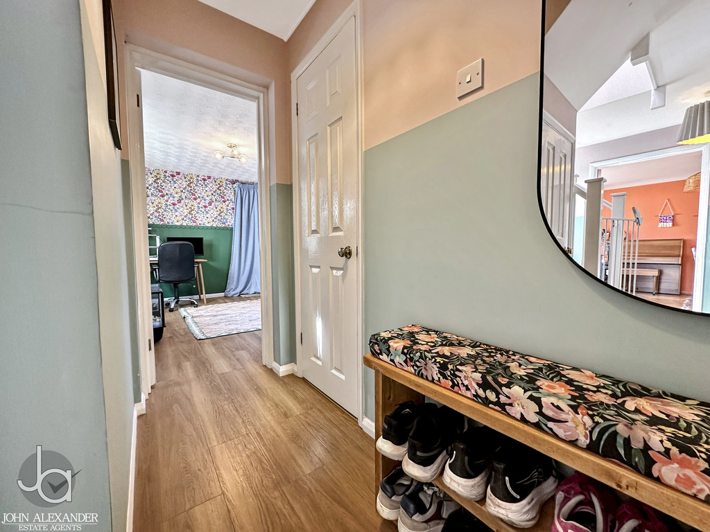 STEP INSIDE Stepping inside the property, you are welcomed into a bright entrance hall where attractive wood‑effect flooring immediately sets the tone and flows seamlessly throughout the home.