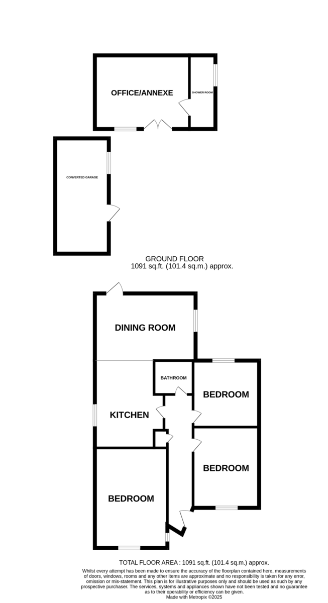 Office / Annexe Shower Room: 11' 1" x 3' 11"