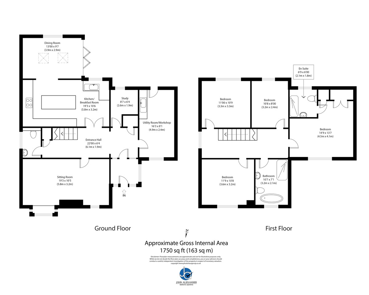 The spacious First Floor Landing (19'3" x 6'4" / 5.87m x 1.93m) provides an elegant central space with fitted shutters and access to the loft.