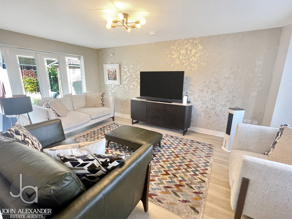 We are delighted to offer this show home presented Four bedroom detached family house located in a desirable position benefiting from landscaped gardens with detached garage and driveway to the rear.