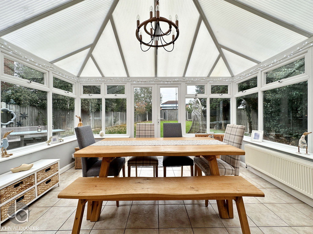 STEP INSIDE Step into the welcoming entrance hallway, which sets the tone for this well-maintained home. To the right, you'll find the spacious lounge, measuring 21'1" x 11'11", a perfect area for relaxing or entertaining, with ample natural light flowing through. Adjacent to the lounge is the dining room (10'2" x 8'), ideal for family meals and gatherings, which leads seamlessly into the bright conservatory (13'9" x 11'1"), offering views of the garden and a tranquil space to unwind.