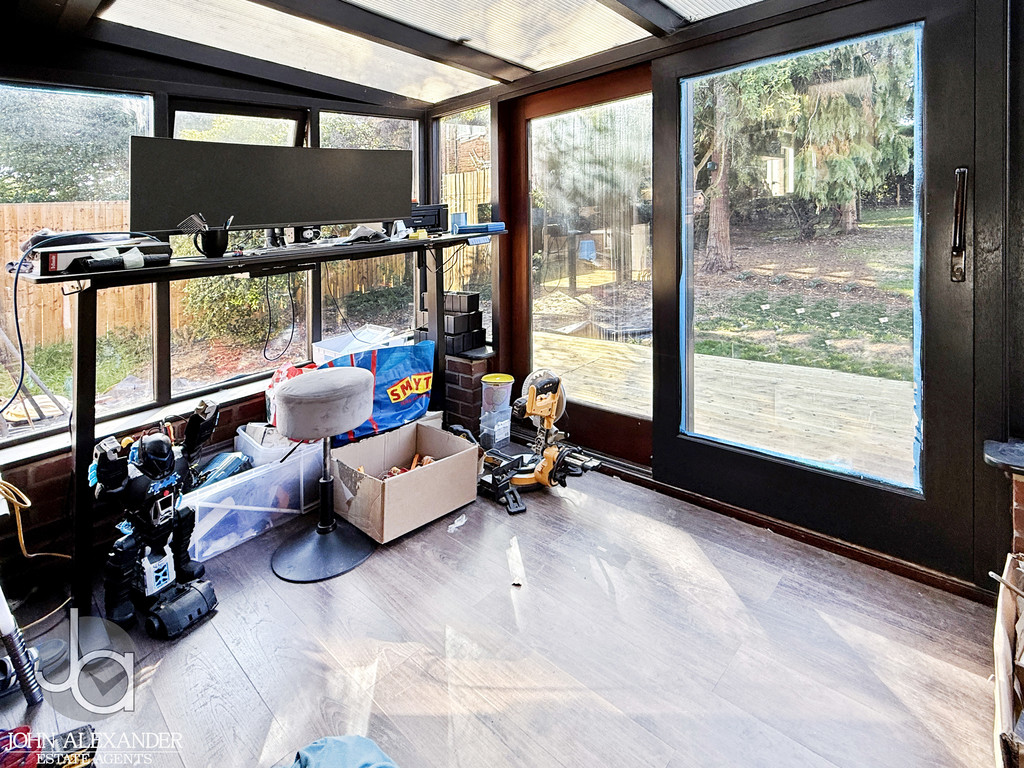 The heart of the home is undoubtedly the newly modernised kitchen, which spans 3.61m x 3.59m (11'10" x 11'9"). This culinary haven is equipped with ample space for both cooking and dining, making it an ideal setting for entertaining family and friends. The kitchen effortlessly flows into a delightful garden room, measuring 3.42m x 2.15m (11'3" x 7'1"), which is drenched in light providing convenient access to the outdoors.