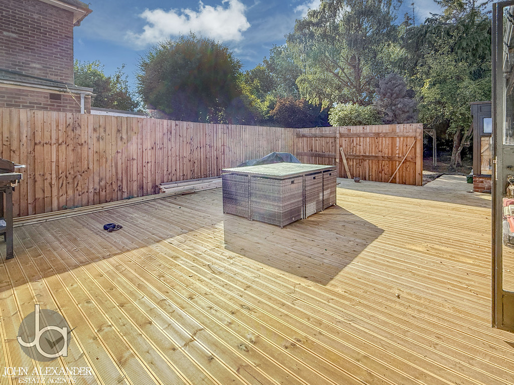 The mature gardens are a highlight of this home, showcasing well-established planting and a beautiful mix of open lawns and private nooks. The grounds present an excellent opportunity for gardening enthusiasts. Additionally, a newly installed decking area complements the expansive lawn, creating the perfect setting for outdoor relaxation and entertaining.