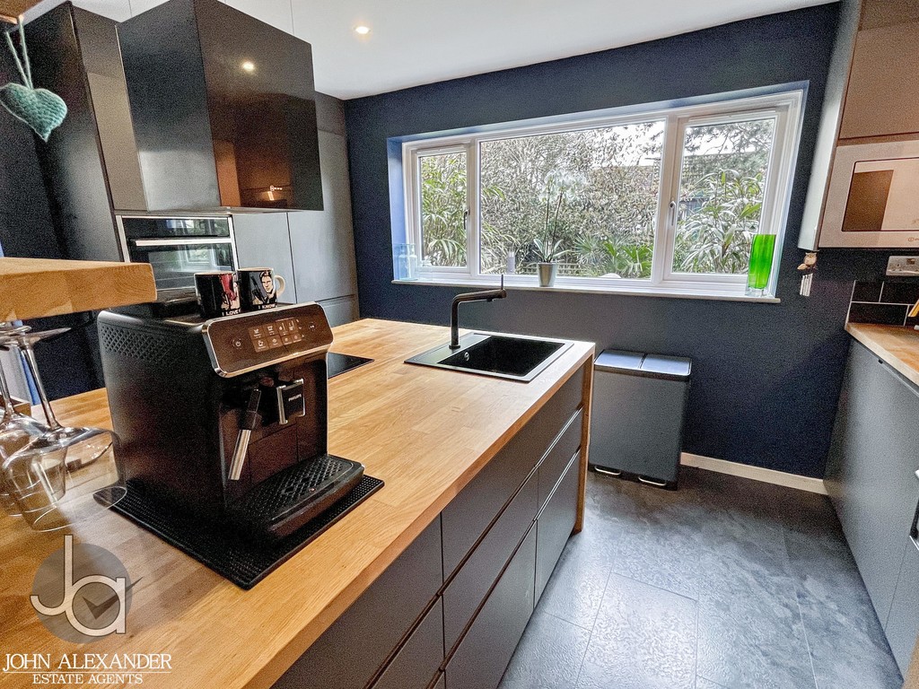• Modern kitchen (refitted 2020) with integrated appliances including a Neff slide and hide oven